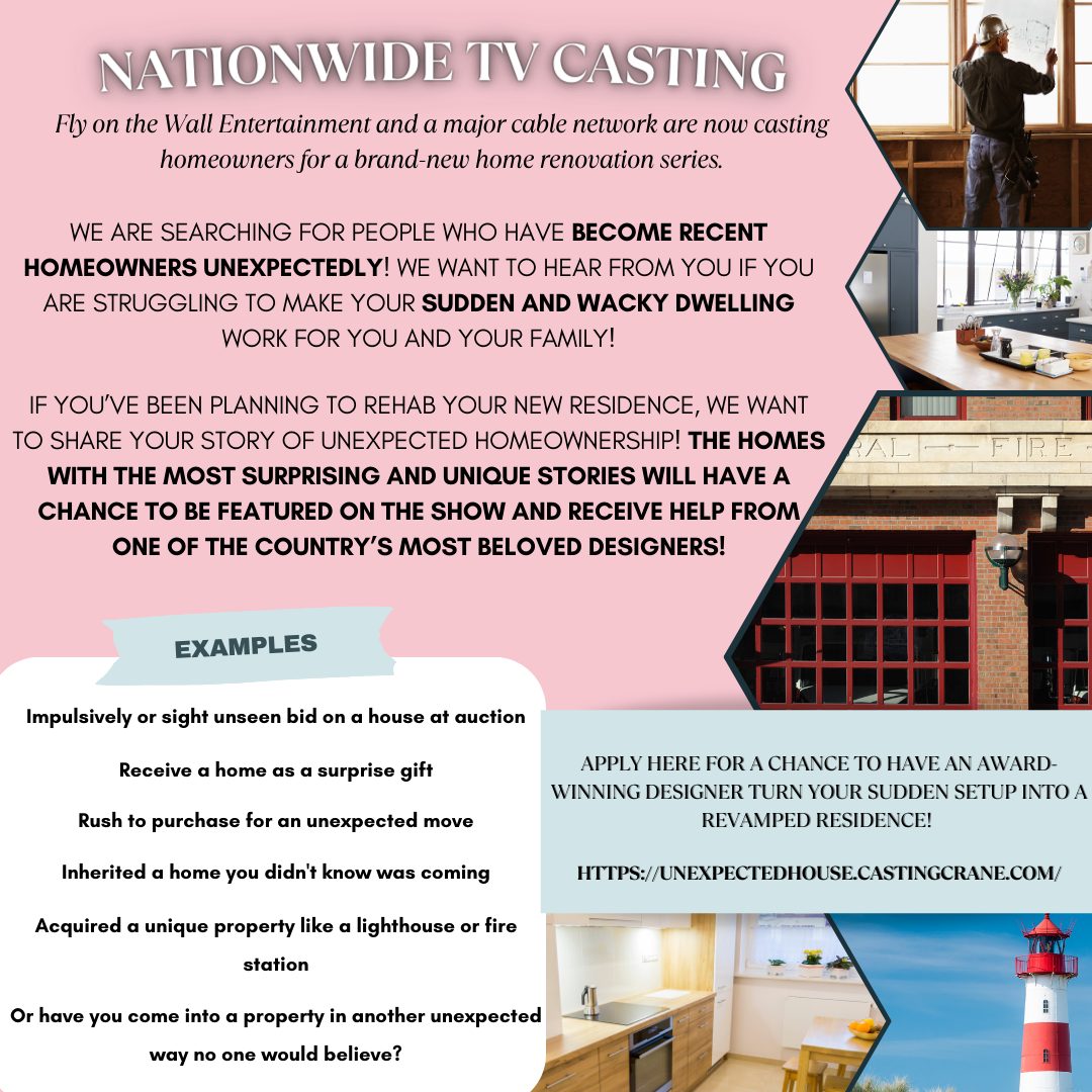 Fly on the Wall Entertainment and a major cable network are now casting homeowners for a brand-new home renovation series.