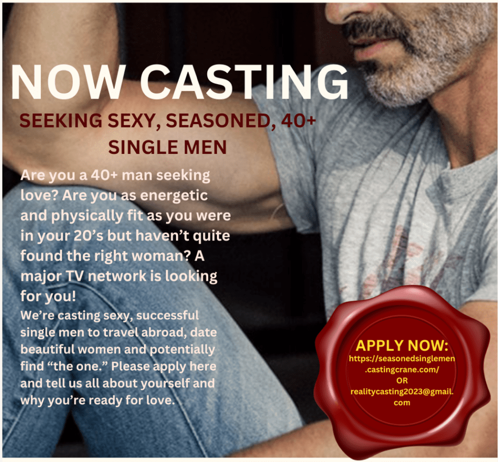 This show is looking for single men that are over 40 that are still sexy and still single. Are you a single man 40+ who is now seasoned but still a great catch? Are you over the age of 40 and still searching for love? Are you full of energy and as physically fit as you may have been in your 20s? Have you not found the right woman yet, your one? If so, a major television network would love to hear from you to see if they can possibly help you meet that right person on a reality TV show.