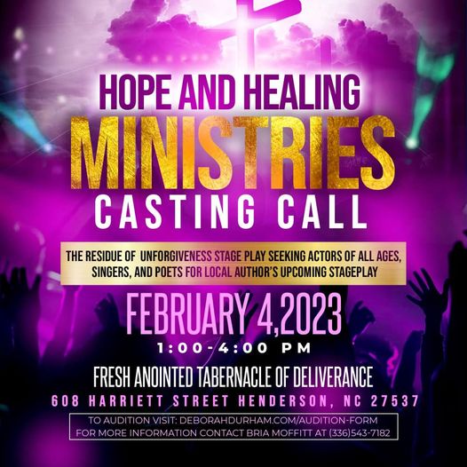 Signup if you are in the Raleigh, Durham, Henderson and surrounding areas! SIGNUP to audition by using the link in the flyer below.