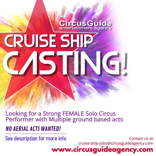Interested in this casting call? For more information email us: cruise-ship-jobs[at]#circusguideagency.com
