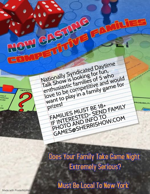 FAMILIES MUST BE 18+ IF INTERESTED-SEND FAMILY PHOTO AND INFO TO GAMES@SHERRISHOW.COM