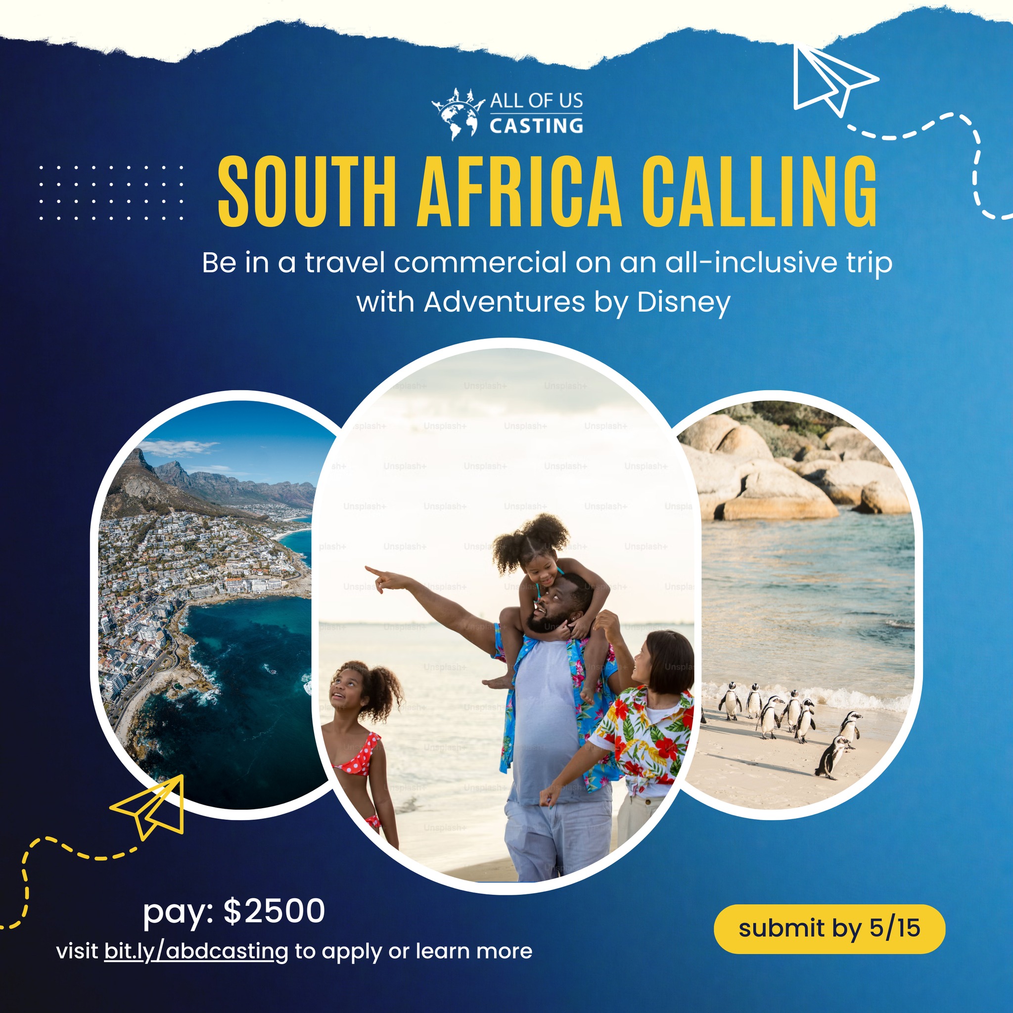Now casting adventurous families and same sex couples nationwide to go on a 10 day all-inclusive trip to South Africa.