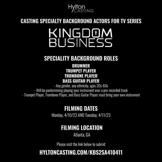 BET TV show Kingdom Business has a call out for extras who live in the Atlanta area.
