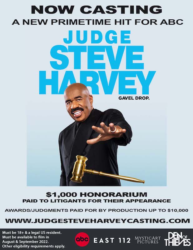 ABC has casting open for the “Judge Steve Harvey Show.”