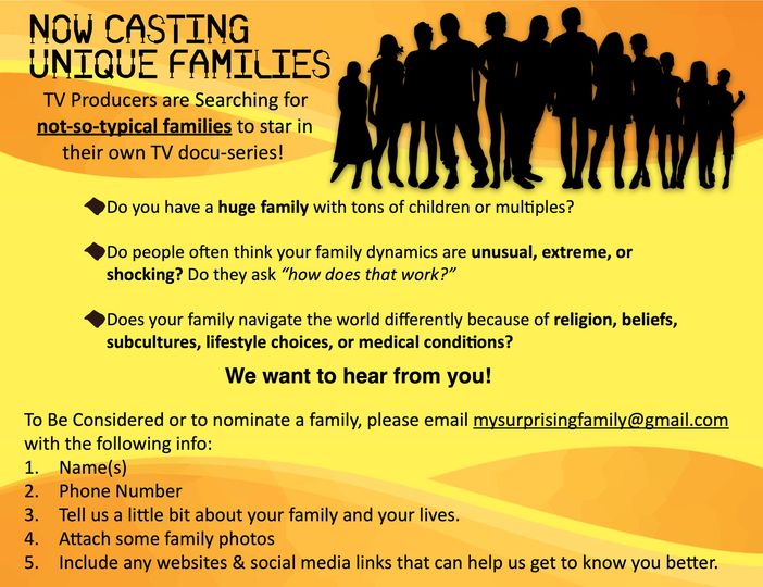 TV Producers are Searching for not-so-typical families to star in their own TV docu-series!