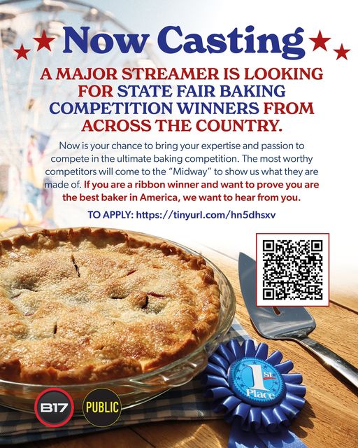 The show and their casting team are seeking people who have competed in State Fair baking competitions…and won, from across the country.