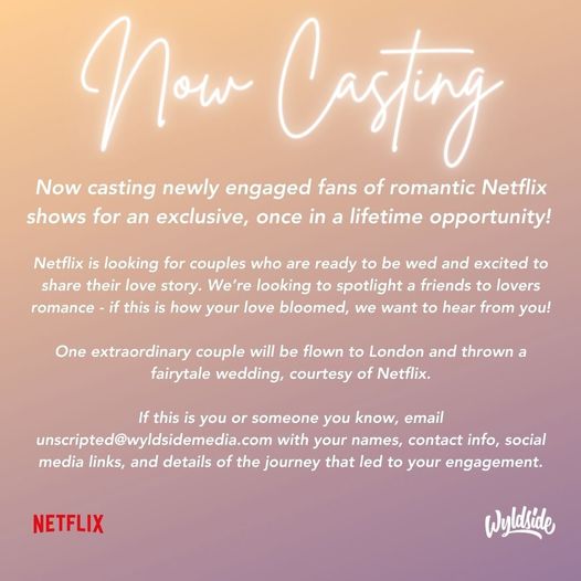 Netflix is looking for couples who are ready to be wed and excited to share their love story.