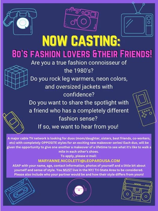A major cable TV network is looking for duos (mom/daughter, sisters, best friends, co-workers, etc) with completely OPPOSITE styles for an exciting new makeover series! Each duo, will be given the opportunity to give one another a makeover of a lifetime to see what it’s like to walk a