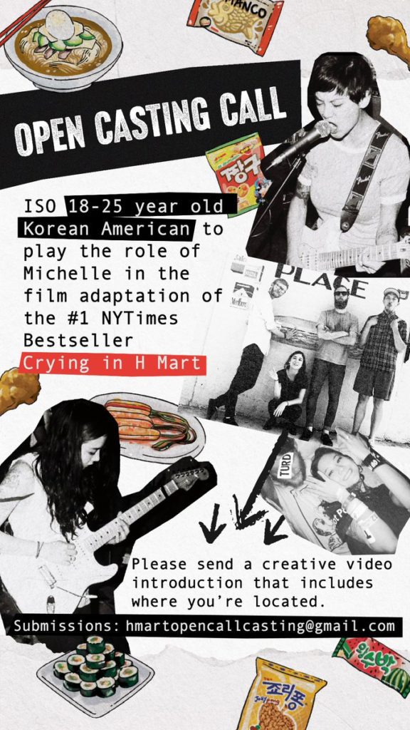 The film adaptation of the New York Times bestseller “Crying in H Mart” is now looking for an actress to fill the lead role of “Michelle.”