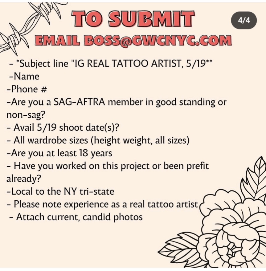 Gwci seeking REAL TATTOO ARTISTS for work on HBO’s new series, BOSS!