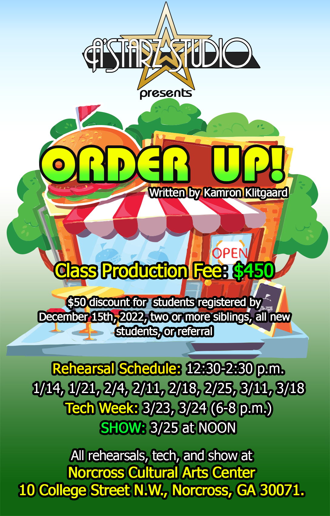 Child Actors Needed for Upcoming Production Order Up! Ages 8-16. Seven open roles/male or female.