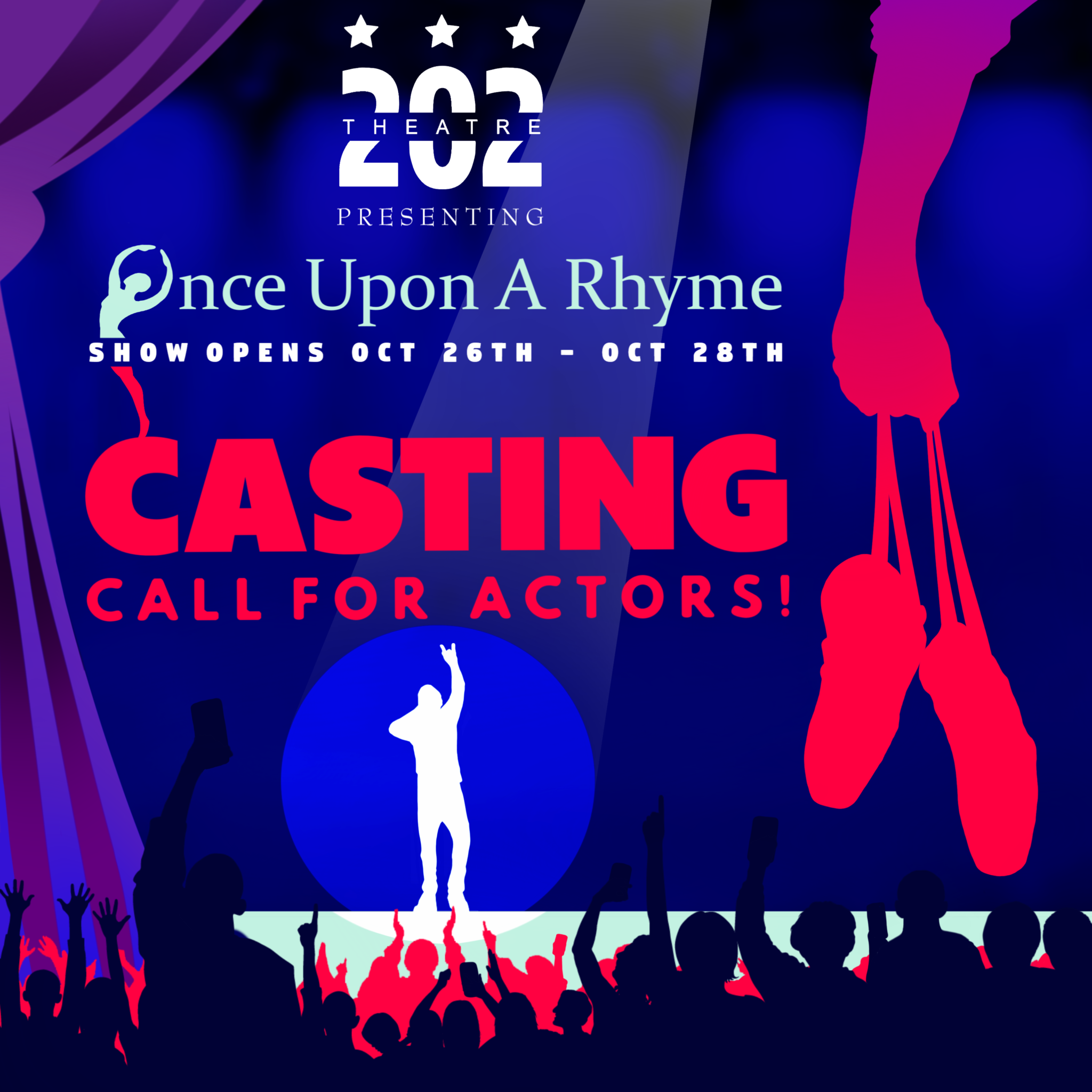 Performances Oct-26-Oct 28 2023. Rehearsals to start in August. Email: info@theatre202.org or DM us on Instagram: @theatre.202