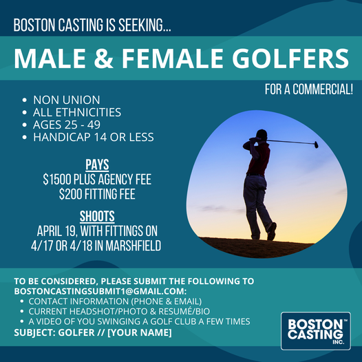 Boston Casting is now seeking golfers in the Boston area for a TV commercial.