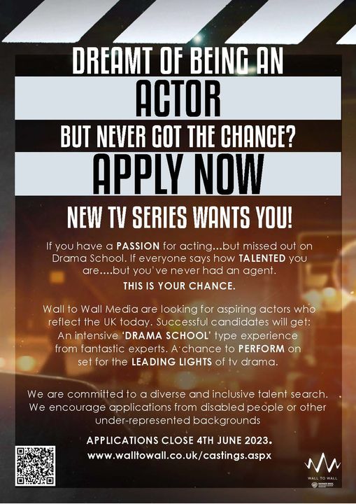 Wall to Wall, the creators of Waterloo Road, Long Lost Family and Glow Up is looking for exciting, raw acting talent who haven’t been able to break down barriers to enter the industry.