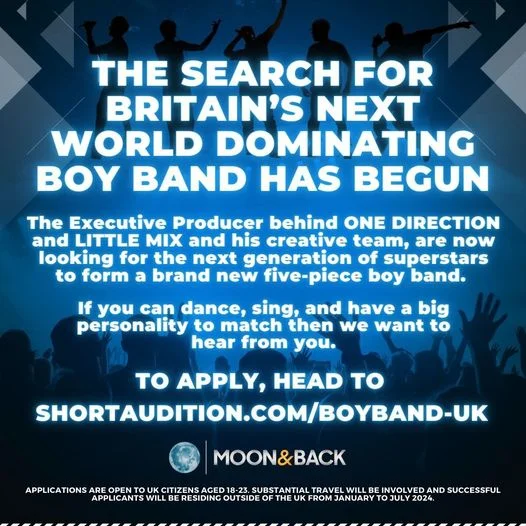 Search for Britain’s next world dominating Boy Band is on.