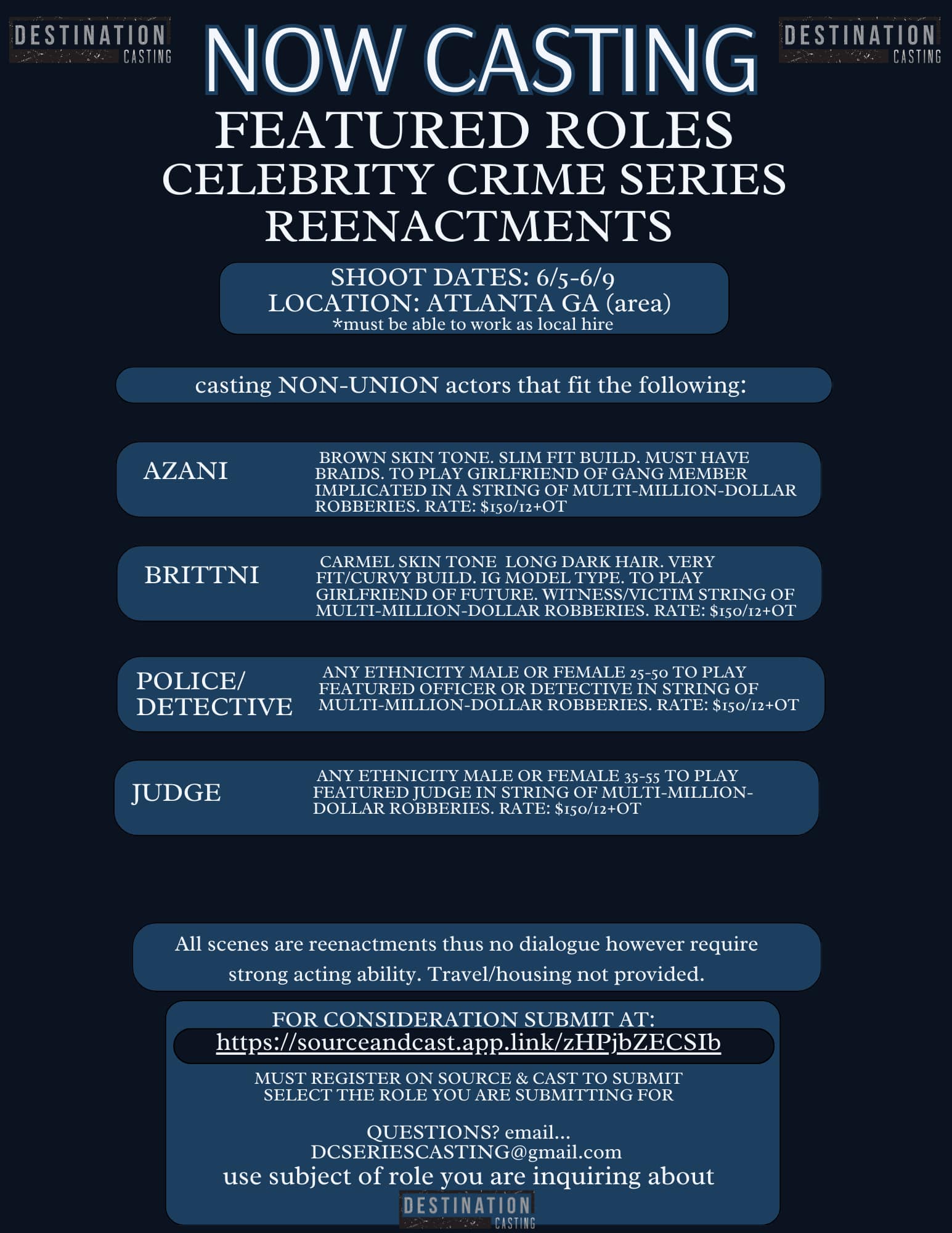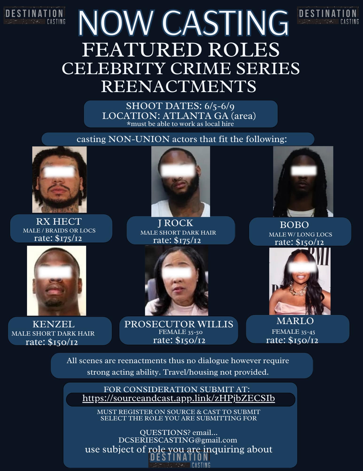 NOW CASTING FEATURED ROLES CELEBRITY CRIME SERIES REENACTMENTS