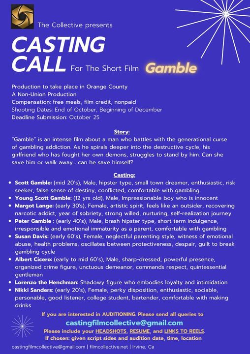 The Collective presents – CASTING CALL For The Short Film Gamble