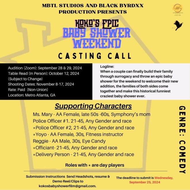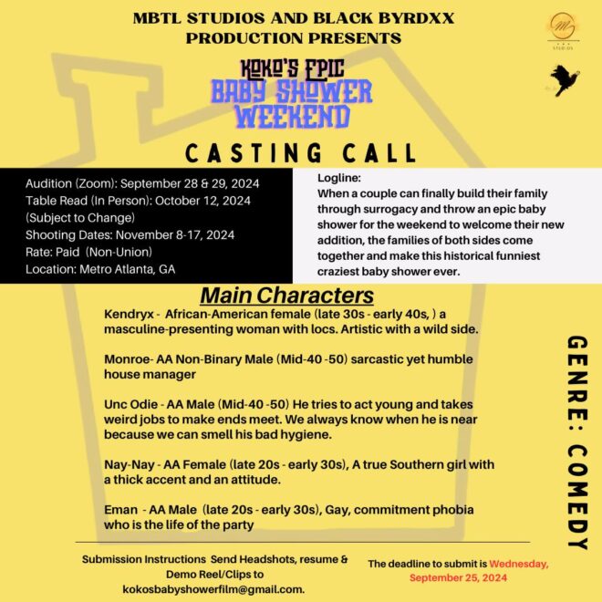 We’re seeking talented actors in the Atlanta area to join our upcoming comedy film Koko’s Epic Baby Shower Weekend!