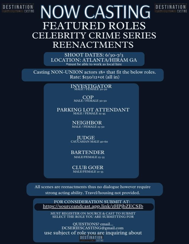 Now Casting: Destination Casting – Featured Roles for Celebrity Crime Series Reenactments