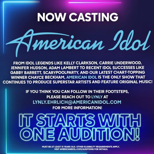 APPLY HERE: https://areyouthenextidol.castingcrane.com/