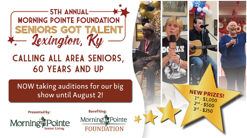 The 5th Annual Morning Pointe Foundation Seniors Got Talent variety show in Lexington, Chattanooga, Franklin and Knoxville has begun its audition season with some exciting changes! This year, the age requirement has been lowered to 60, allowing more seniors and groups (ages 60 and older) to participate.