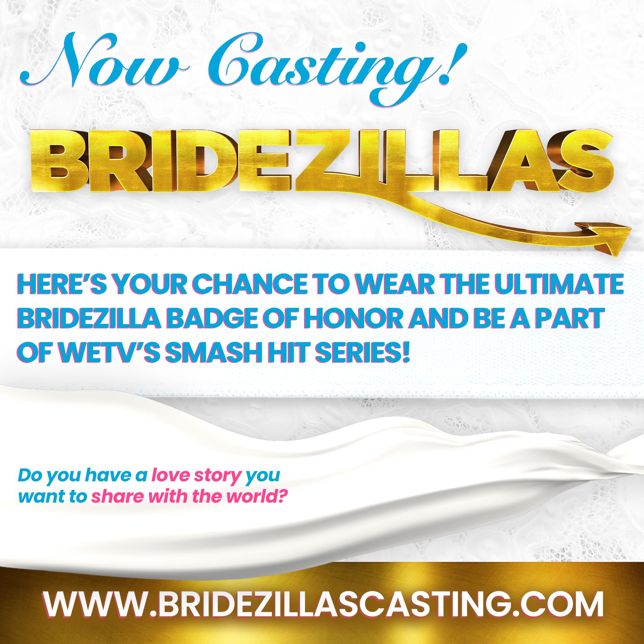HERE’S YOUR CHANCE TO WEAR THE ULTIMATE BRIDEZILLA BADGE OF HONOR AND BE A PART OF WETV’S SMASH HIT SERIES BRIDEZILLAS!