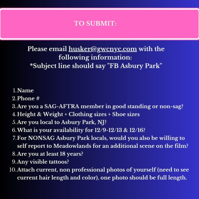 Please email husker@gwcnyc.com with the following information: *Subject line should say “FB Asbury Park”