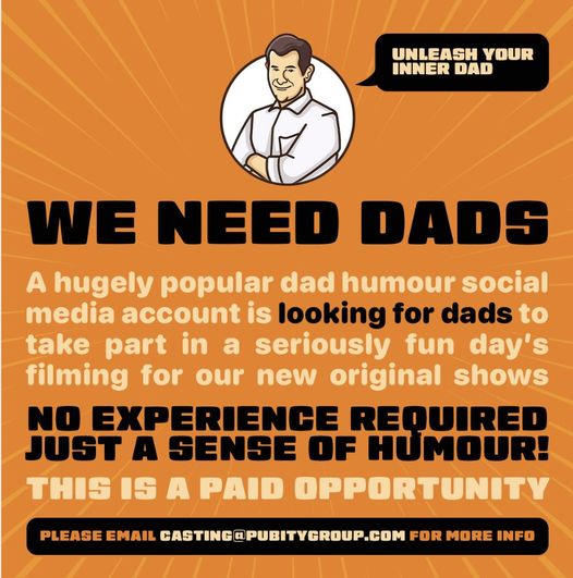 Calling All Dads! A wildly popular dad humor social media channel is on the lookout for dads to star in our upcoming original shows.