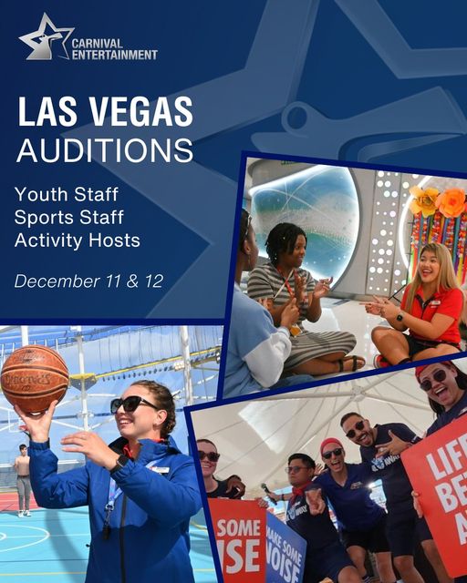Please note that Carnival does not cover travel or lodging costs for audition attendees. If you’re not in the Las Vegas area, you can still apply by submitting your application online.