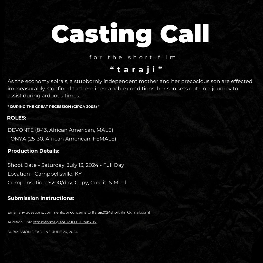 Details are included in the graphic! If you have any questions, comments, and/or concerns forward them to us at: taraji2024shortfilm@gmail.com