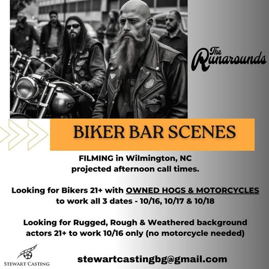 -BIKER with OWN MOTORCYCLE- Wednesday 10/16, Thursday 10/17 & Friday 10/18 – will be afternoon call times – MUST COMMIT TO ALL 3 DAYS!