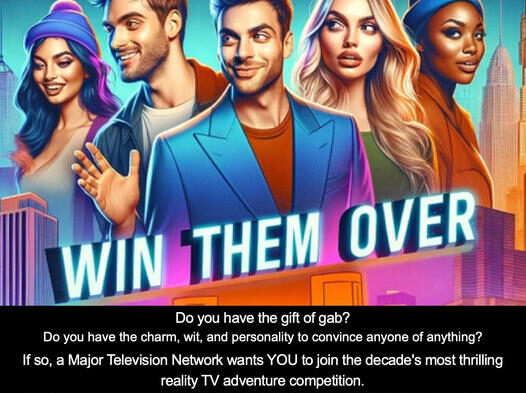 Do you have the gift of gab and the charm, wit, and personality to convince anyone of anything? If so, a major television network wants YOU to join a reality TV competition. The casting directors are seeking quick-thinking, dynamic individuals with a talent for influence and a gift for winning people over.