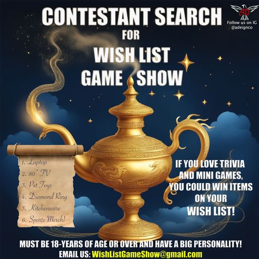If you’re interested, please email me alexg.casting@gmail.com or wishlistgameshow@gmail.com for more details.
