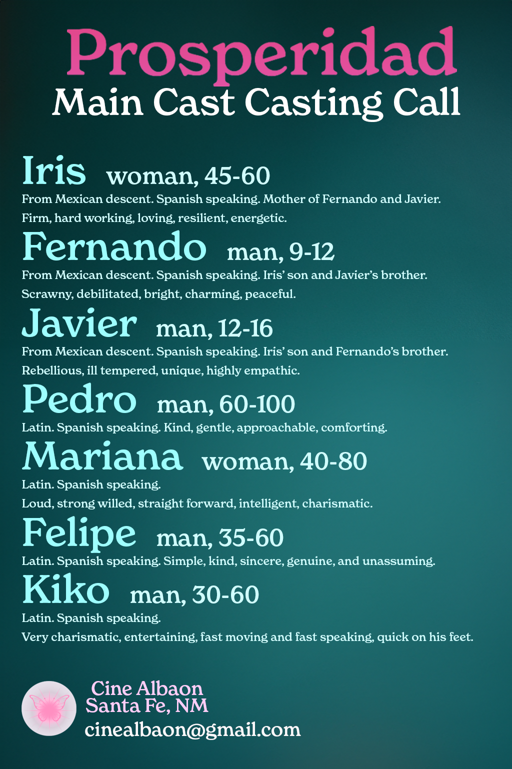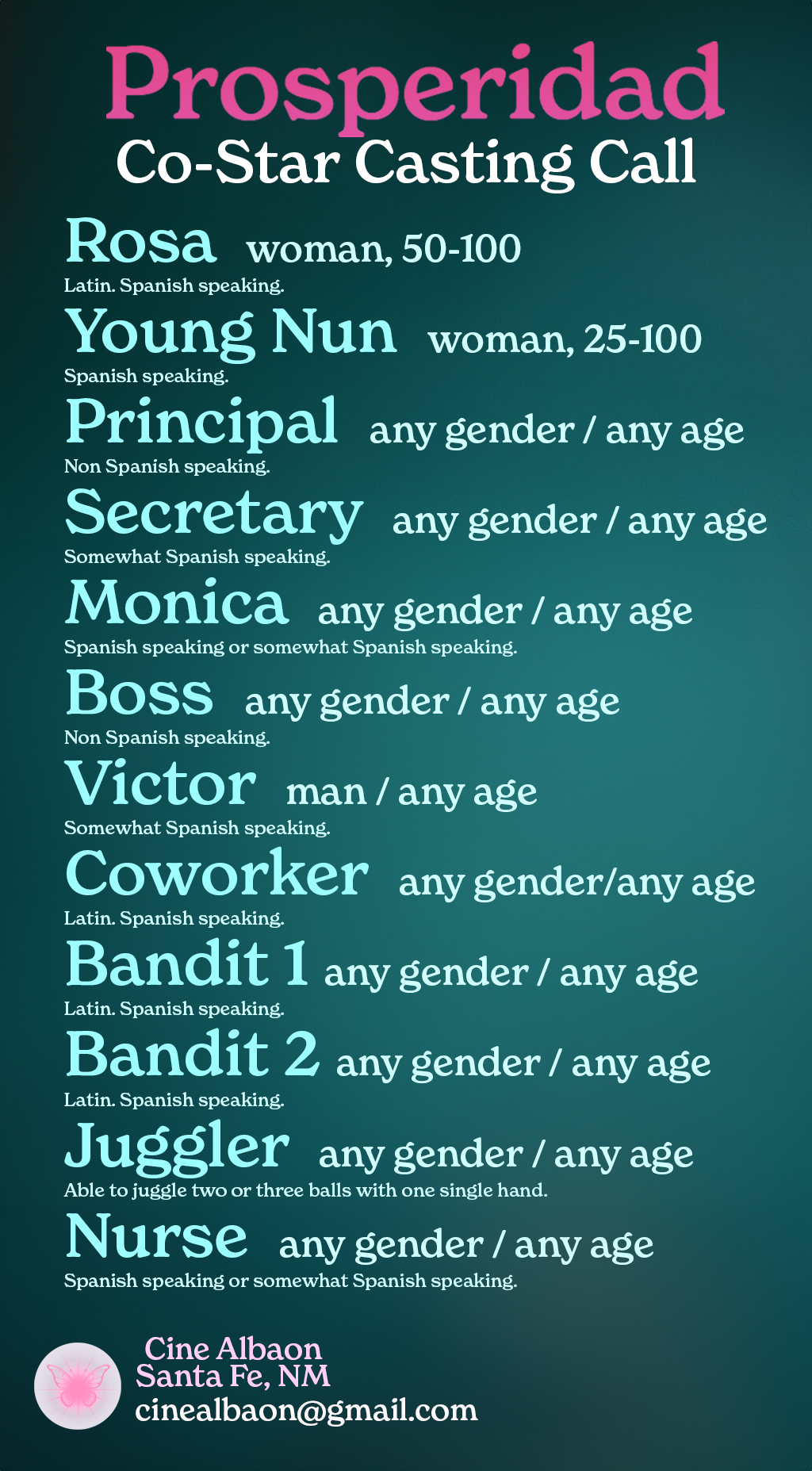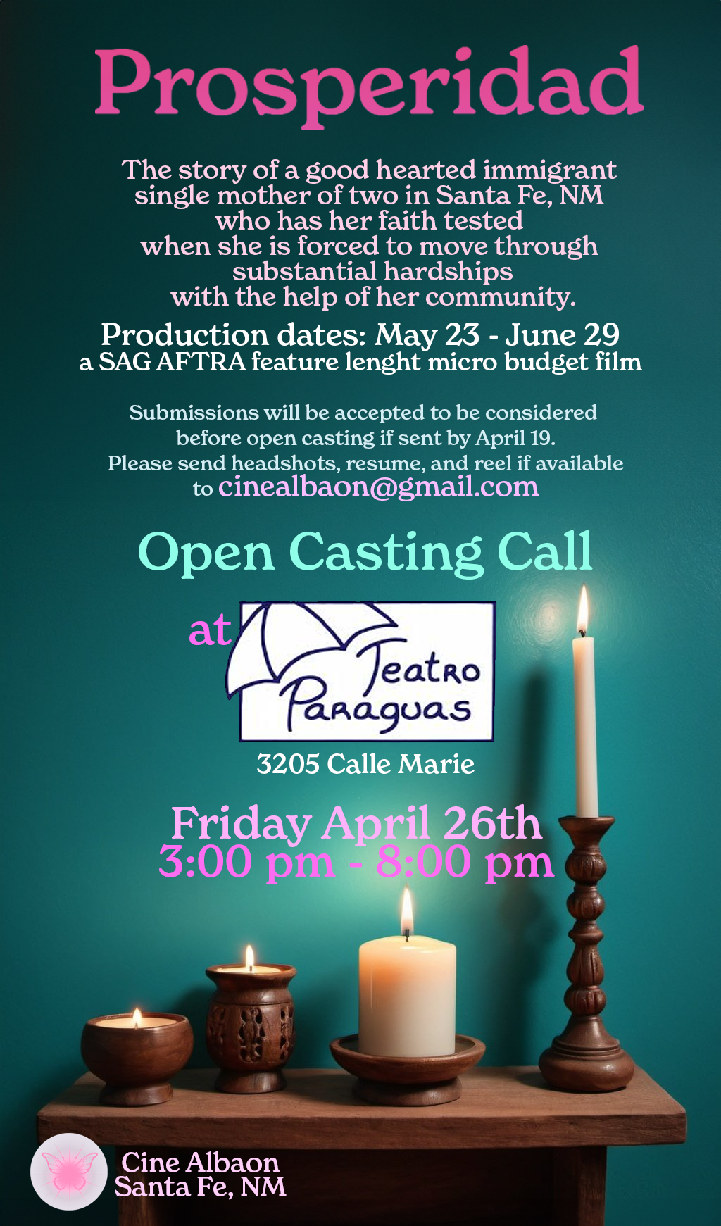 Open Casting at Teatro Paraguas (3205 Calle Marie) on Friday April 26th, 3:00 pm – 8:00 pm.