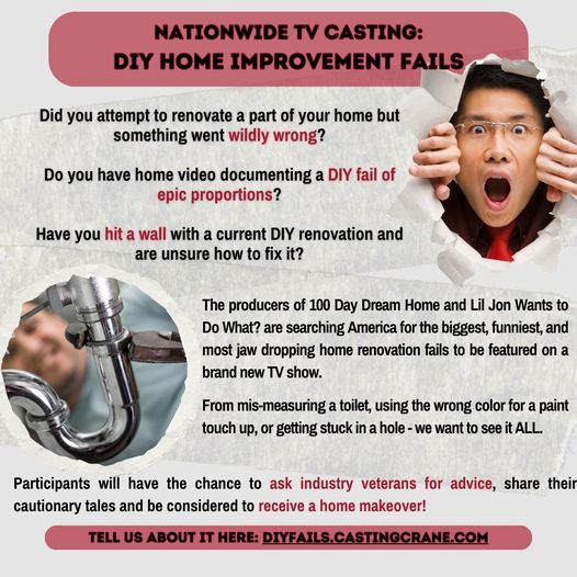 The creators of hit shows like “100 Day Dream Home” and “Lil Jon Wants to Do What?” are on the hunt across the nation for the most outrageous, sidesplitting, and jaw-dropping home improvement blunders to feature in an exciting new television program.
