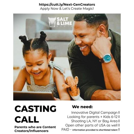 Salt & Lime Media, in partnership with a leading technology company, is looking for dynamic parent-child duos to be the face of an exciting new product launch.