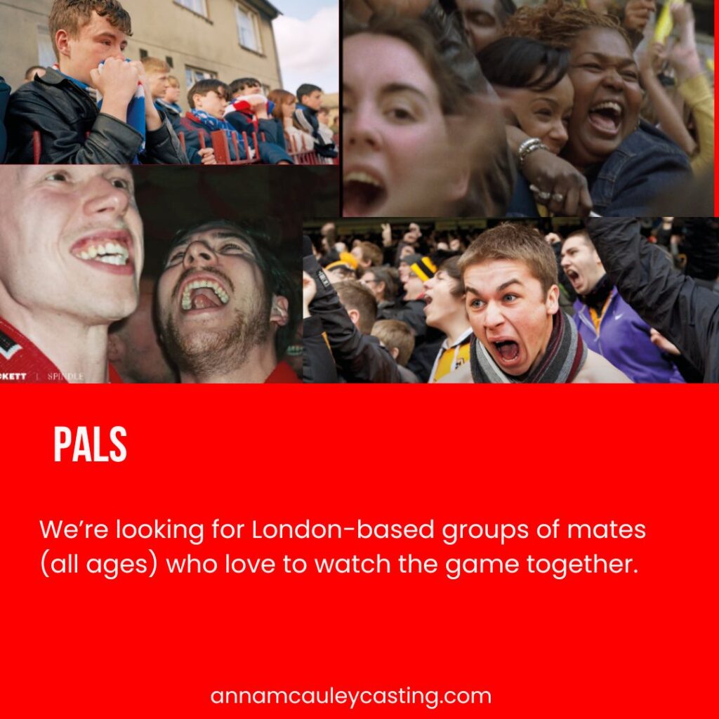 We are casting a TV advertising campaign around this summer’s major football tournament. We are looking for people of all ages, backgrounds, ethnicities, abilities and gender who love the sport and avid watchers of England games. We would particularly love to find people who watch the game with their families, friends and neighbors and who love the game and supporting England together.