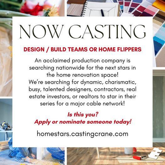 NOW CASTING – DESIGN/BUILD TEAMS OR HOME FLIPPERS.