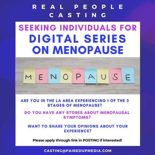 A major streaming platform and a Peabody Award-winning director are looking for individuals to share their personal stories around their menopause experience in a popular digital series. This project aims to empower and inform others about menopause while breaking down stigmas.