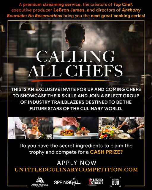 From the creators of Top Chef, executive producer LeBron James, and the directors behind Anthony Bourdain: No Reservations, this reality TV show is seeking up-and-coming chefs to compete for a cash prize.