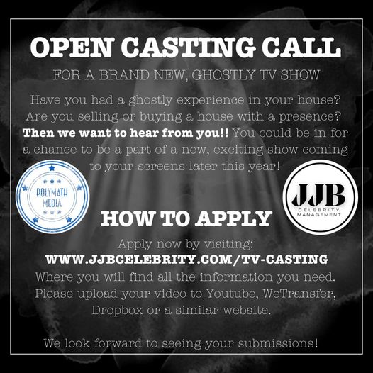 HOW TO APPLY: Visit our official casting website at WWW.JJBCELEBRITY.COM/TV-CASTING to access all the details you need. There, you’ll find instructions on how to submit your application. Simply upload your video to YouTube, WeTransfer, Dropbox, or a similar platform, and let your ghostly experiences come to life!