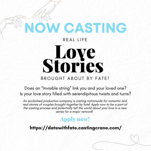 An acclaimed production company is casting nationwide for romantic and real stories of couples brought together by fate!