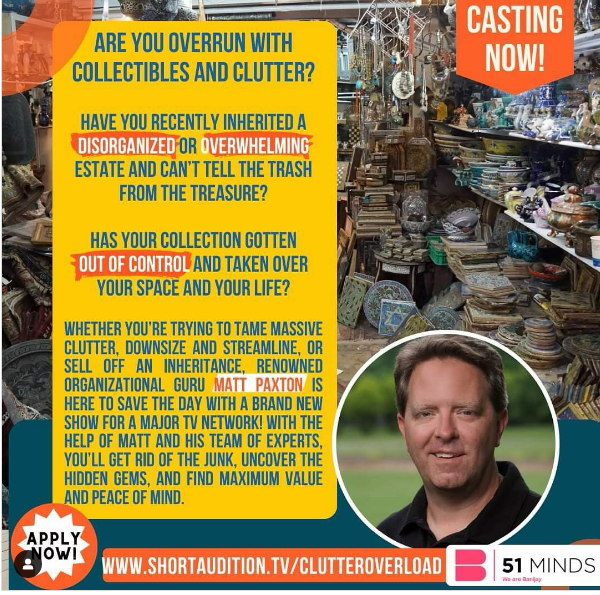Whether you’re grappling with overwhelming clutter, embarking on a downsizing journey, or navigating the process of selling an inherited estate, the esteemed organizational expert Matt Paxton is ready to come to your rescue with an exciting new television show for a Major TV Network! With Matt at the helm, supported by his team of seasoned experts, you’ll bid farewell to the unnecessary, unveil hidden treasures, and discover optimal value and tranquility.