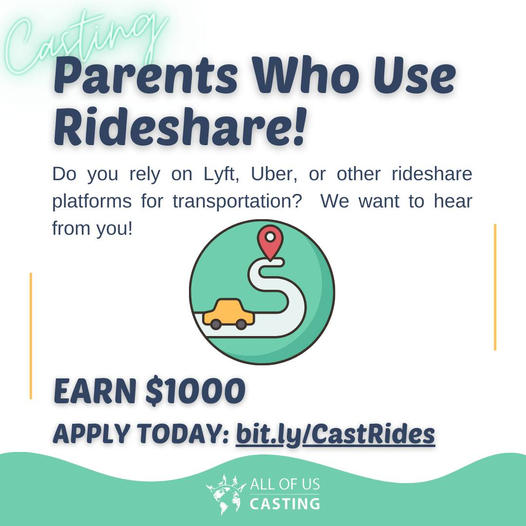 More specifically, All of Us Casting is seeking parents who use the Lyft ride share service to get their teens to where the need to go in the San Francisco area. This is a paid a gig and those that are cast to share their Lyft story in the promo will be paid $1k for their time. Please be aware that they are only looking for real people and not actors.