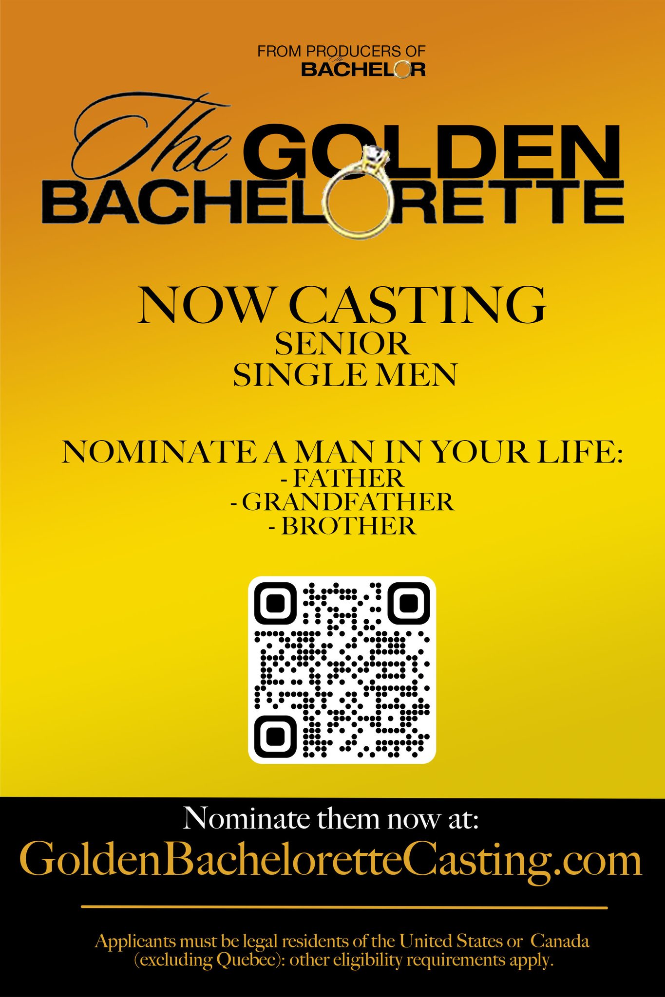 We are NOW Looking for MEN for The Golden Bachelorette! (NATIONWIDE SEARCH)