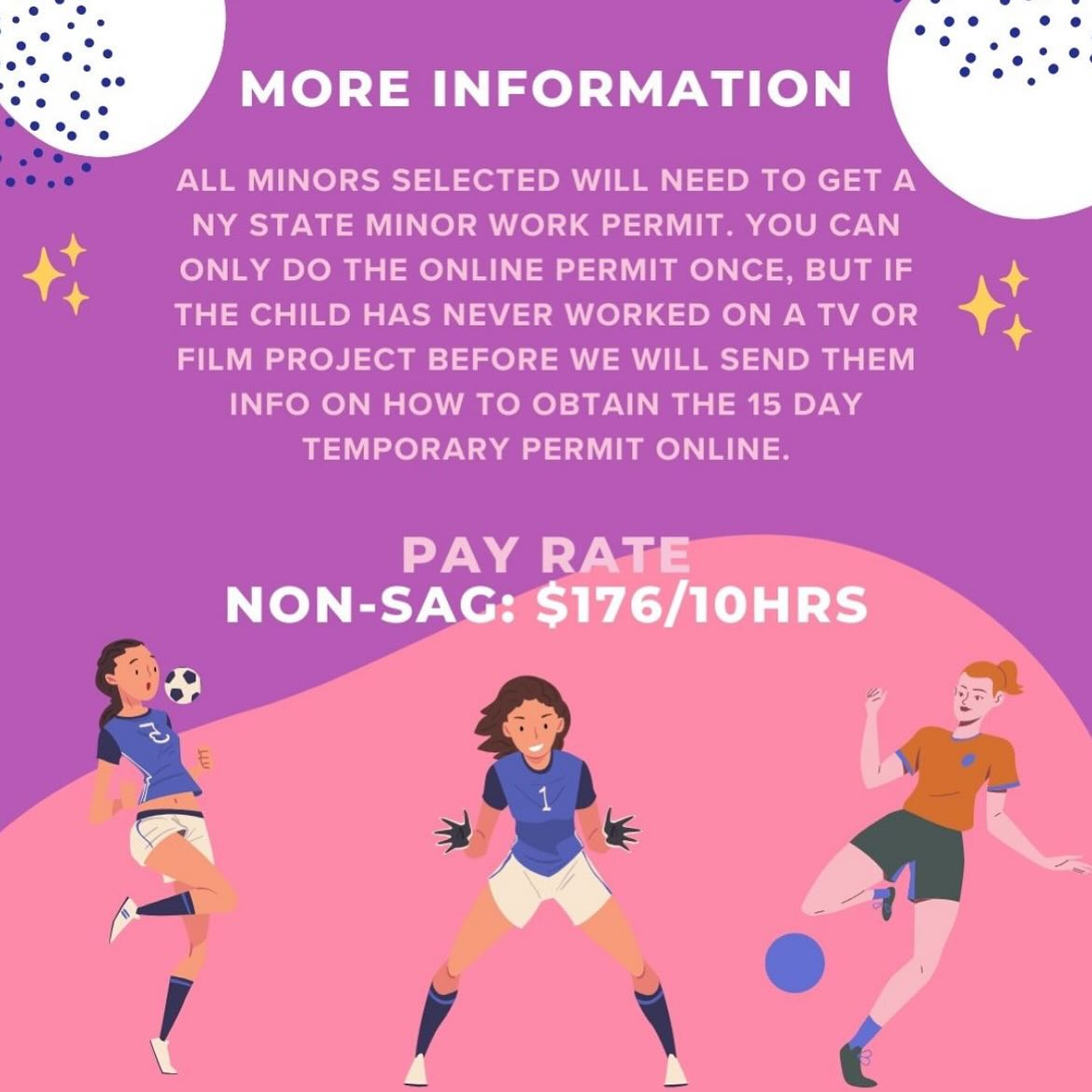 All minors selected will need to get a NY state minor work permit. You can only do the online permit once, but if the child has never worked on a TV or film project before we will send them info on how to obtain the 15 day temporary permit online.