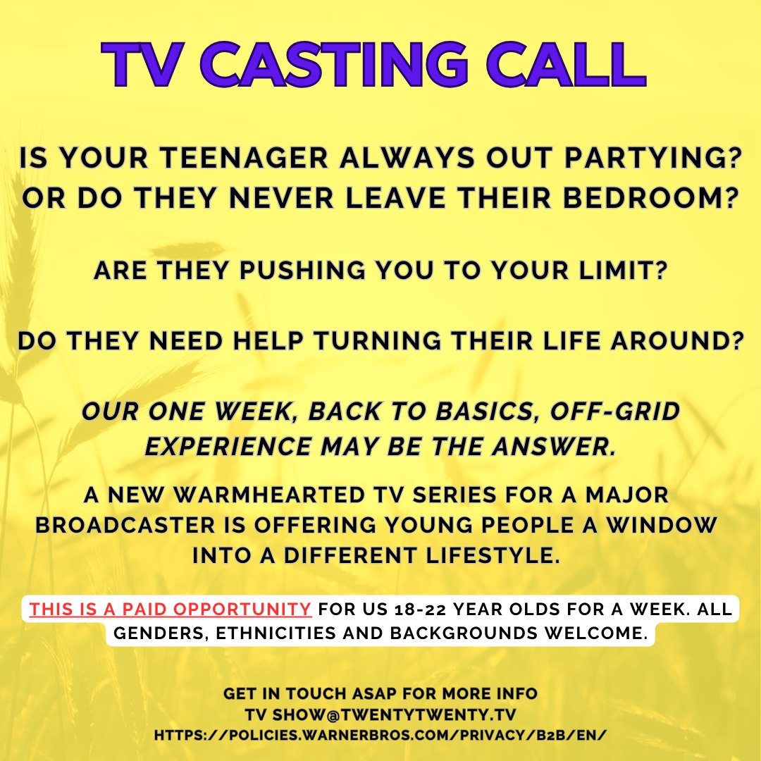 A compassionate new TV series for a major broadcaster is offering young adults aged 18-22 a glimpse into a different lifestyle. Those cast for the show will have the entire trip paid for which includes travel, food and accommodations.