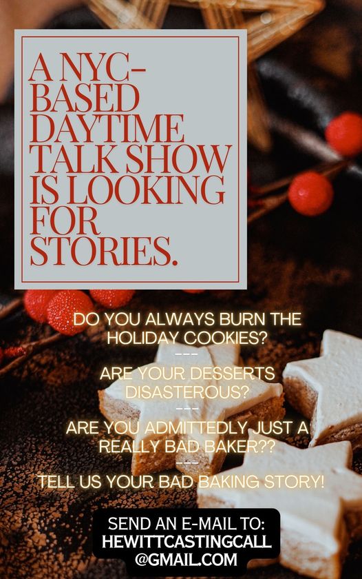 A NYC-based daytime TV show is on the hunt for self-proclaimed “bad bakers” from the Tri-State area to feature in a fun holiday segment. That’s right, this daytime show wants to hear from the worst bakers in NYC. Whether you consistently burn your brownies, confuse sugar with salt, or just have a knack for kitchen mishaps, this could be your moment to shine (even if your pastries don’t!).