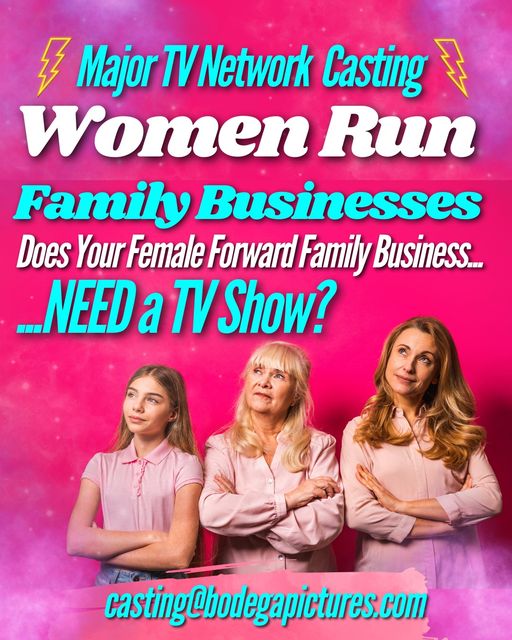 A TV production company, in partnership with a major cable network, is searching nationwide for exceptional female-led family businesses! If your family boasts charismatic individuals and operates an engaging business, this is your chance to shine in your very own television series on a prominent cable network, all while getting paid for being yourselves!