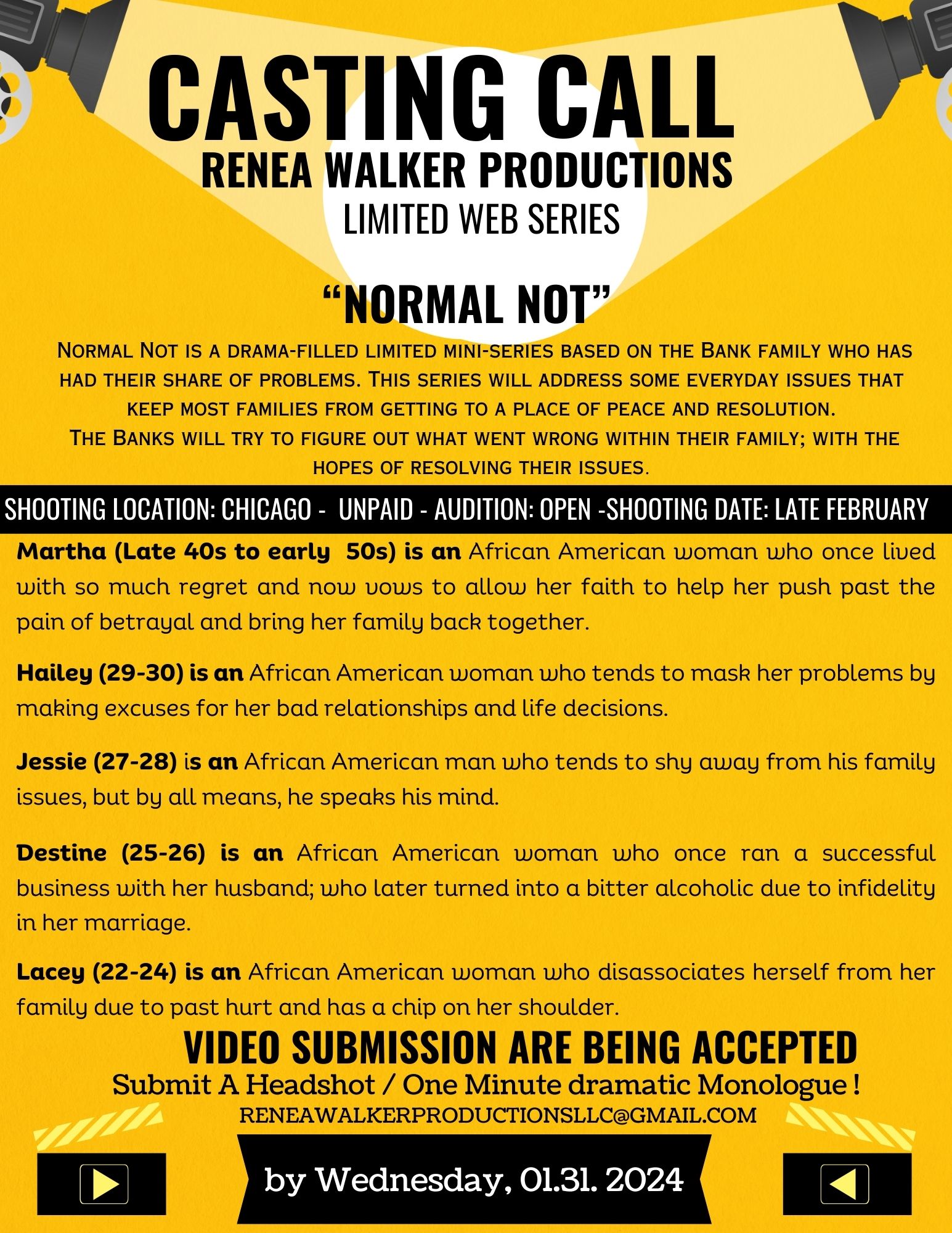 Please submit to: reneawalkerproductionsllc@gmail.com by 01/31/2024 12:00 AM